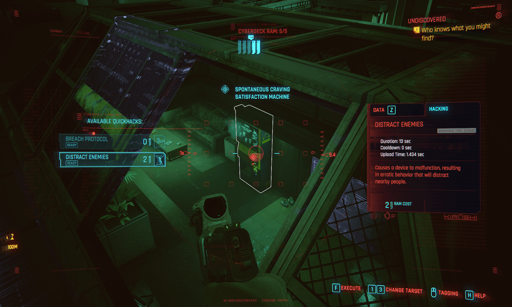 - Five intelligence - Only needed if you want to hack the various hacking points inside the dojo for some easy eddies and components.
