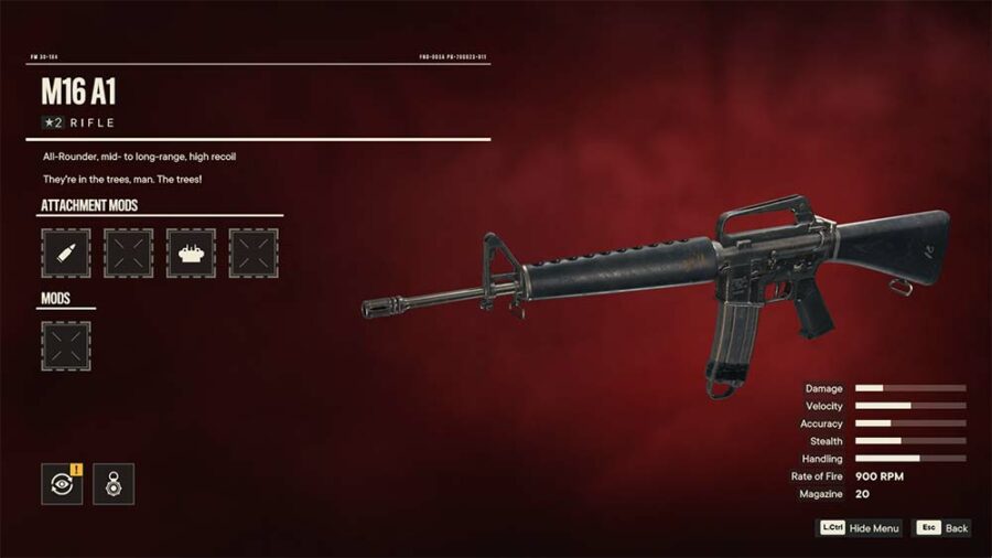 - M16-A1 Rifle - Highly customizable full-auto Assault Rifle (AR)