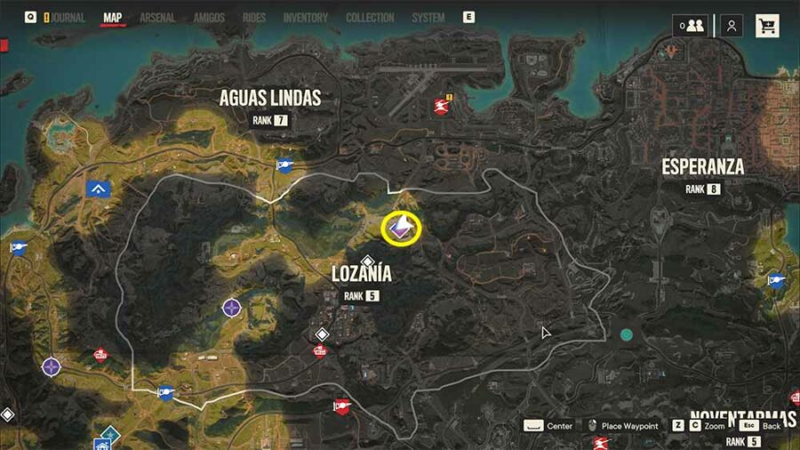 The Lozania hills are located to the North-West of Verdera town. The place is easily accessible but the supply drop isn't. This mission is going to thoroughly test your parkour skills in the game.